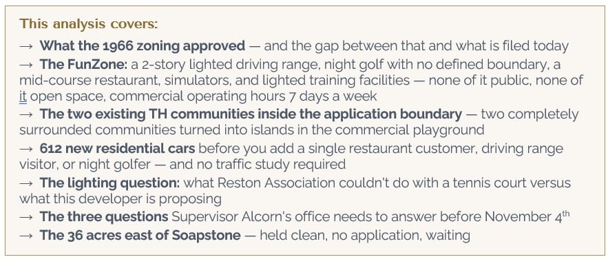 Reston National Golf Course: What the Filed Engineering Drawings Reveal About 306 Tiny Condos, Night Lights, Driving Range, 612 Residential Cars, No Traffic Study, a Mid-Course Restaurant.