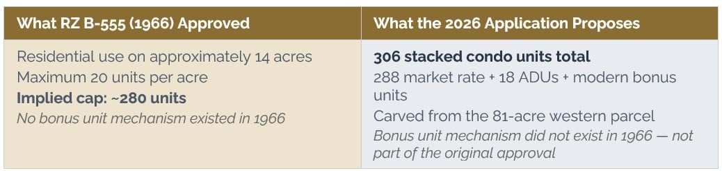 If the PRC plan amendment mechanism holds — if one filing can simultaneously approve 306 condos AND convert 120 acres of open space into a commercial entertainment complex, without a traffic study and without a separate commercial zoning review – 36-acre eastern parcel becomes the next move. Under the same legal argument. Using the same process.