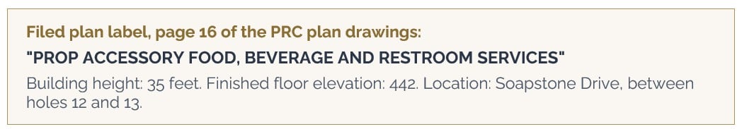 A 2,000 square foot standalone restaurant building on Soapstone Drive — mid-fairway, enclosed by a 6-foot chain link fence, accessed directly from the road. The applicant’s own communications with county transportation staff confirm this generates independent customer traffic. It is not a snack bar. It is a commercial restaurant in the middle of a residential PRC community.