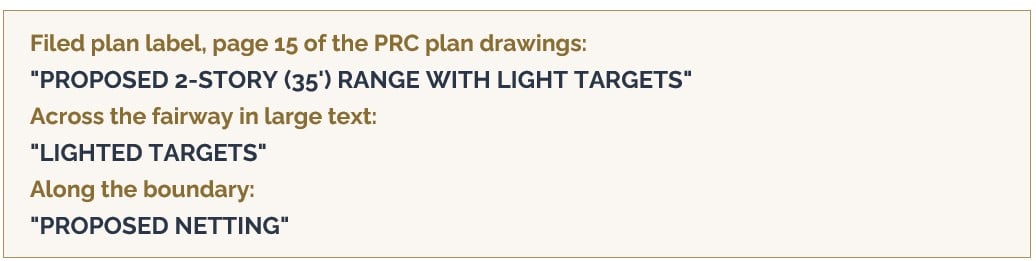 RA could not light four tennis courts in this PRC zone. A private developer is proposing a 2-story commercial driving range with lighted targets, plus undefined night golf lighting across the course, in the same zone using the same process. The standard being applied appears to be different. That question deserves a written answer before November 4th.