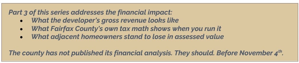 Part 2 is about what is actually inside those applications. Not the press summary. Not the concept language from a community meeting. The filed engineering drawings accepted by Fairfax County on March 27, 2026.